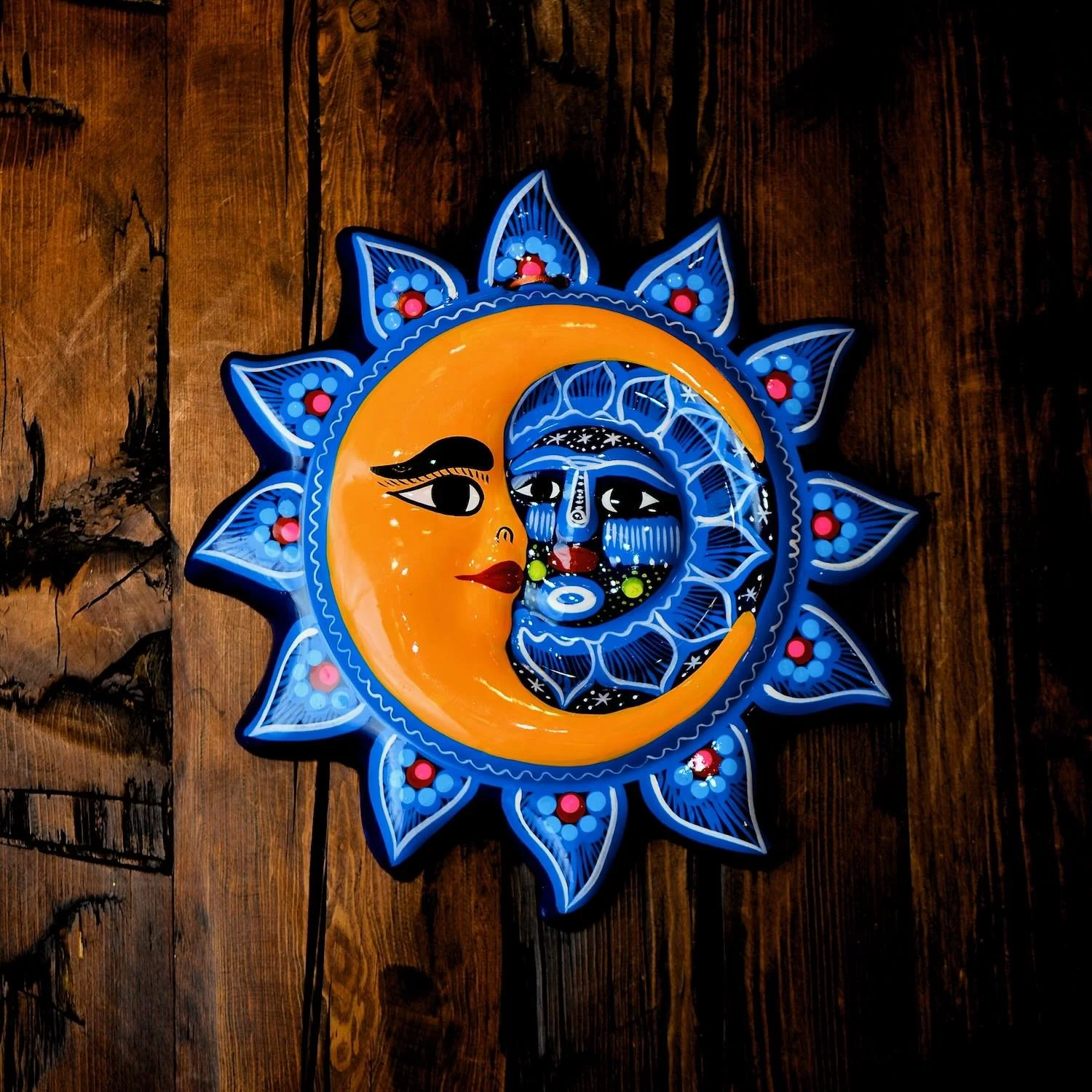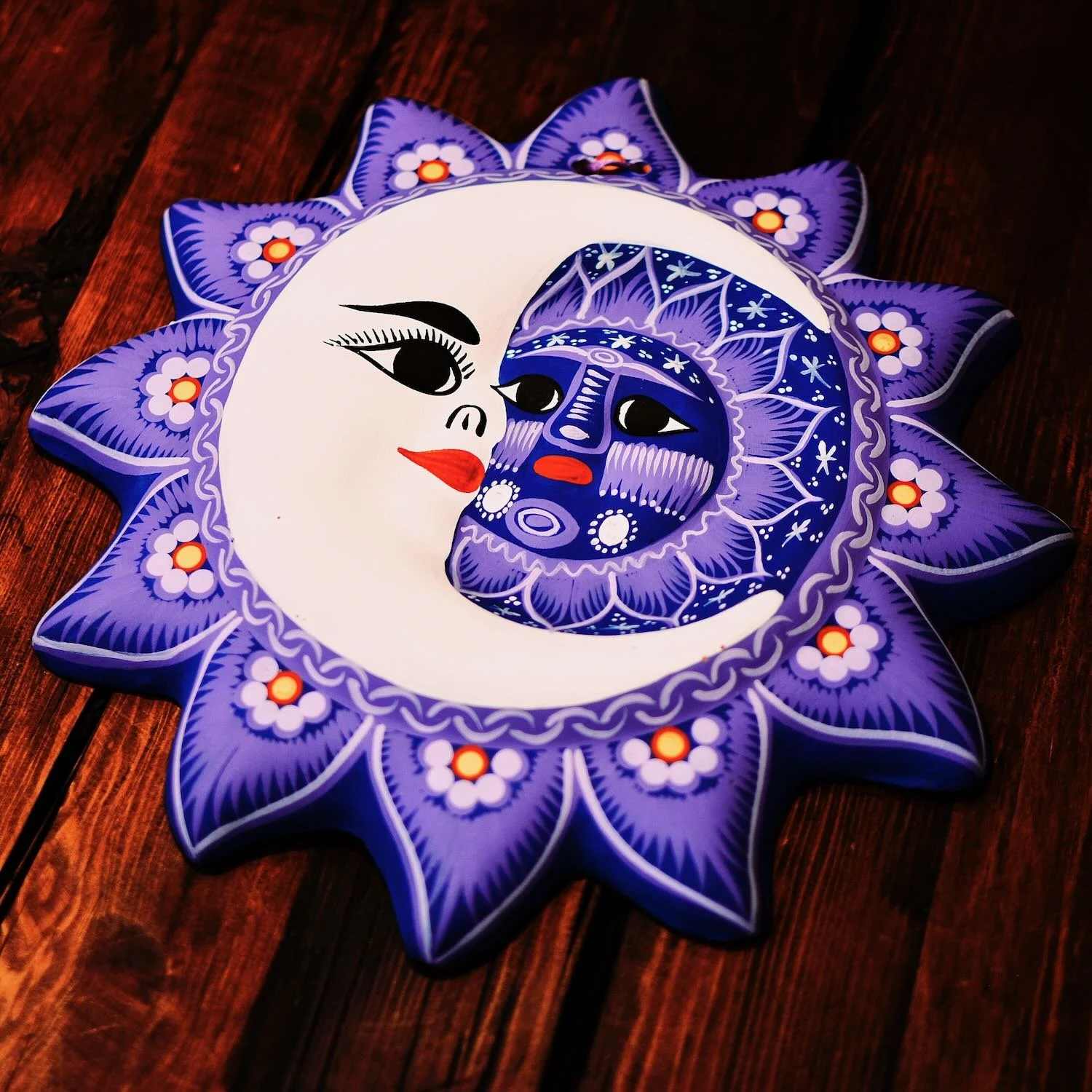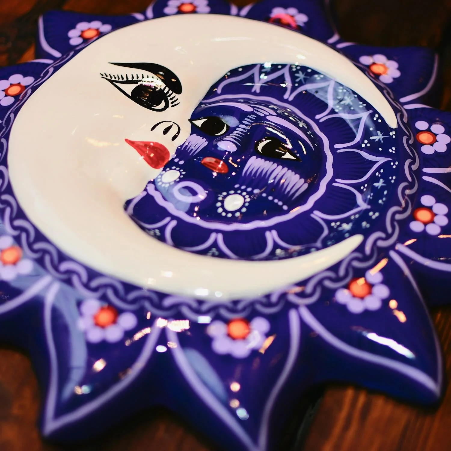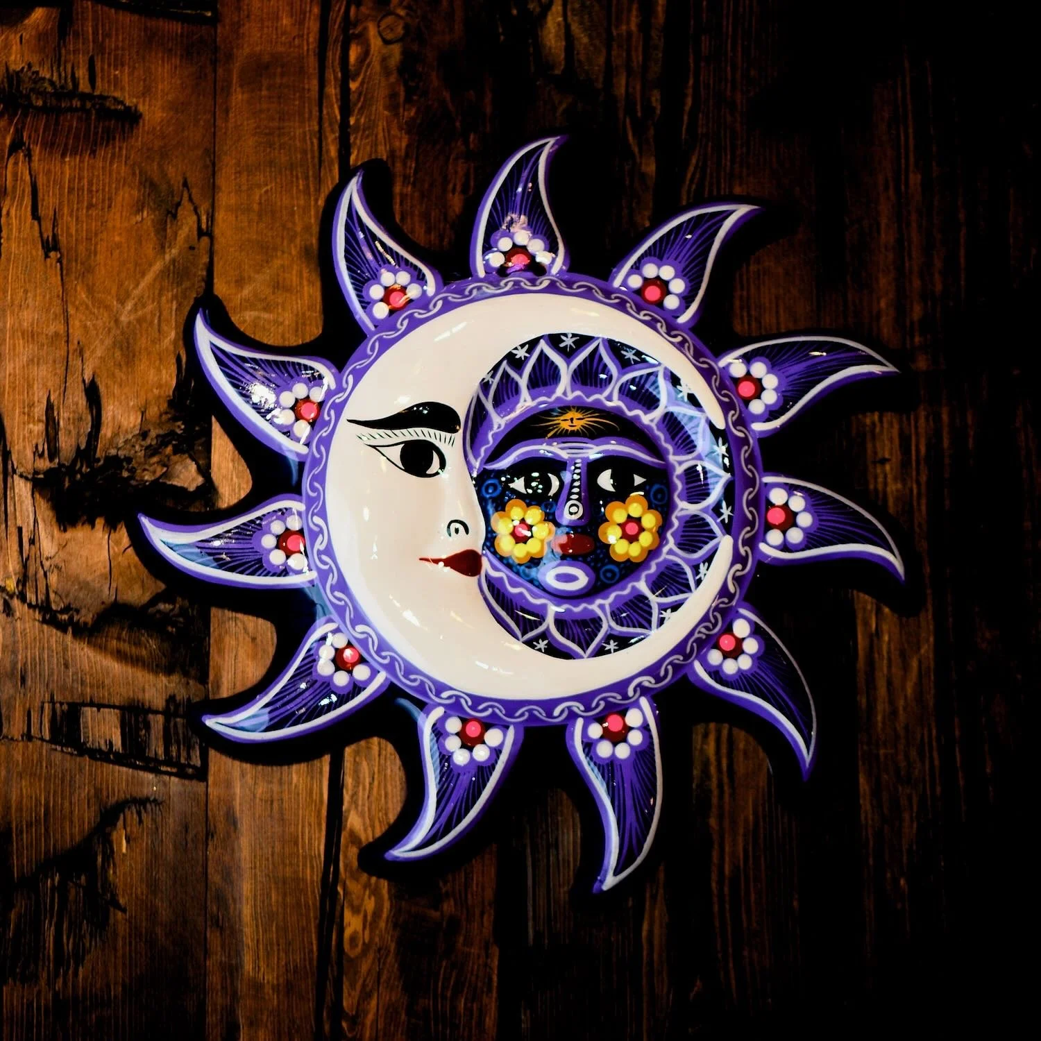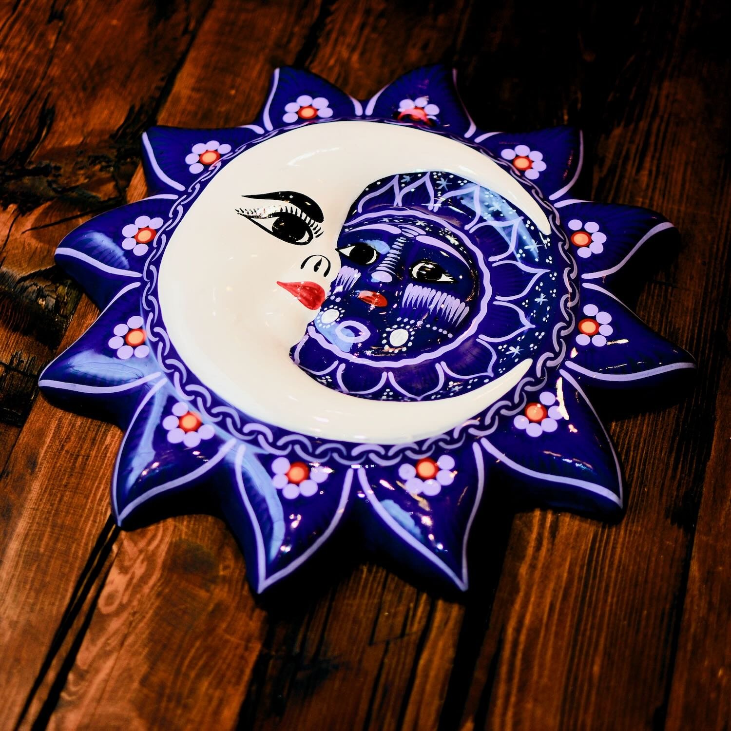Returns & Exchanges | Shipping Categories: Select a Category Dining Bars Bar Tables Benches Booths Buffets Cabinets Chairs Curios Islands Stools Dining Tables Living Armoires Benches Chairs Coffee Tables Console & Sofa Tables End Tables Hall Trees Ottomans Saddle Stands Sofas Office Bookcases Desks Desk Chair Furniture Bed & Bath Beds Chests Dressers Nightstands Vanities Decor Animals Birds Cats Dogs Candles & Incense Candle Holders & Stands Burners Luminarias Chimineas Cowhide & Leather Bowls Coasters Cowhides Cow Skulls Miscellaneous Runners Dia de los Muertos Doors Glassware Bottles Glasses Glassware Sets Pitchers Shot Glasses Holiday Christmas Halloween Other Outdoor Grills Metal Art Planters, Jars & Vases Religious Angels Crosses Retablos Sacred Hearts Serveware Barware Bowls Canisters & Jars Cups Display Plates Miscellaneous Plates Spoons Tea & Coffee Pots Tortilla Warmers Sinks Table Decor Boxes Picture Frames Table Decor Textiles Amate Aprons Baskets Blankets Coasters Cornhusk Palm Decor Pillows Table Runners Wall Decor Clay Copper Glass Metal Suns, Moons & Stars Talavera Western Art & Mirrors Carved Mirrors Paintings Photography Sculptures Lighting Table Lamps Floor Lamps Lampshades Pigskin Rawhide Specialty Lighting Apparel Purses & Bags Decor / Wall Decor / Suns, Moons & Stars Sol y Luna de Talavera $60.00 Sol y Luna de Talavera $49.00 Talavera Sun & Moon with Stars $99.00 Sol Vibrante $199.00 Sol Y Luna $299.00 Cobalt Clay Sun Face $59.00 Arcilla Sol y Luna $49.00