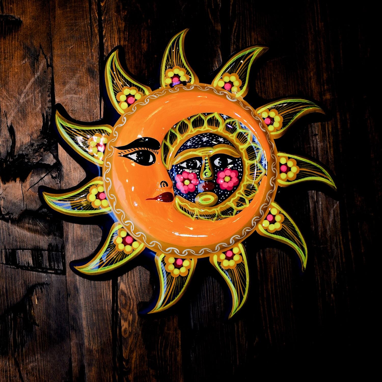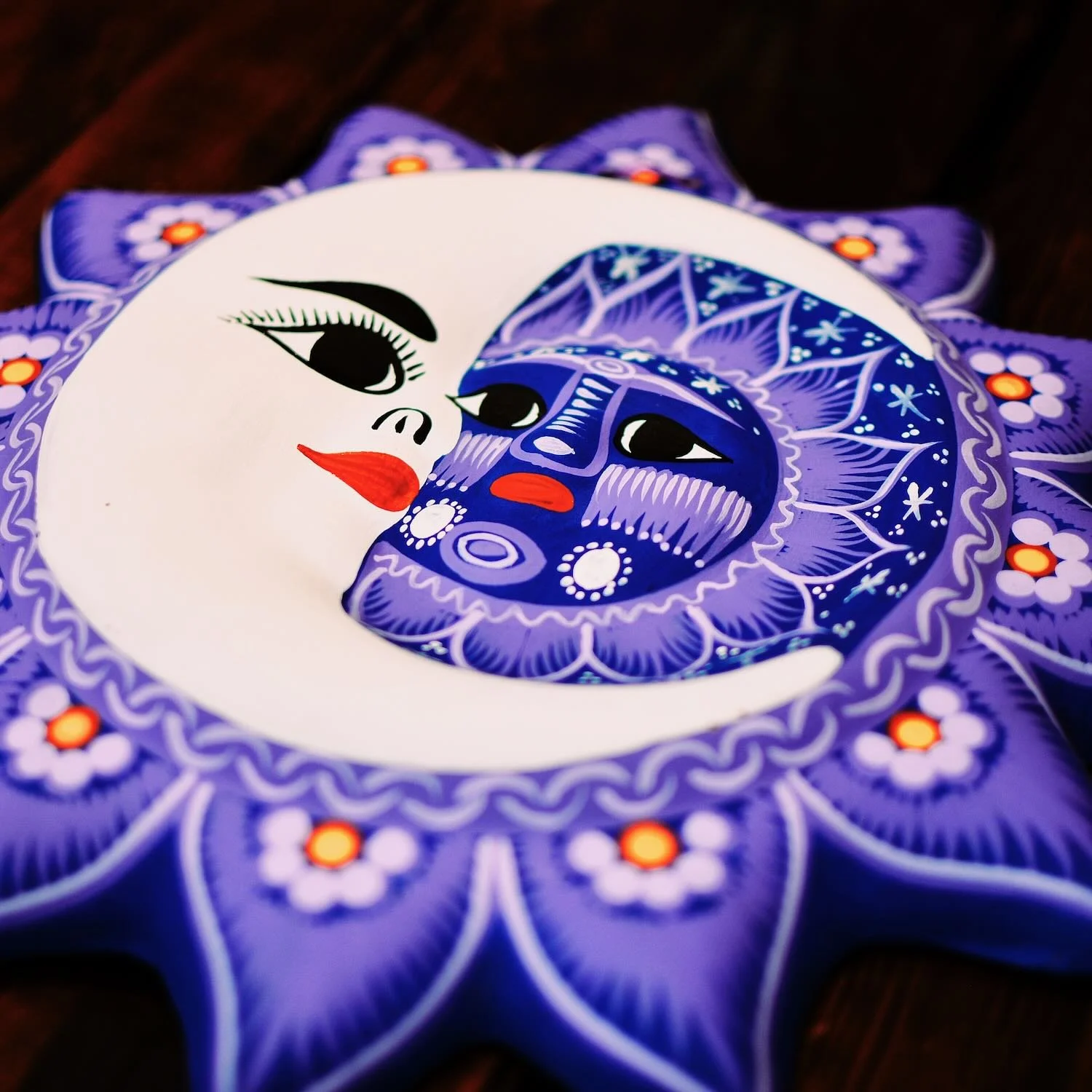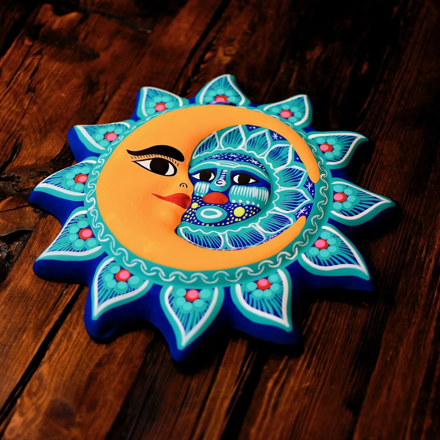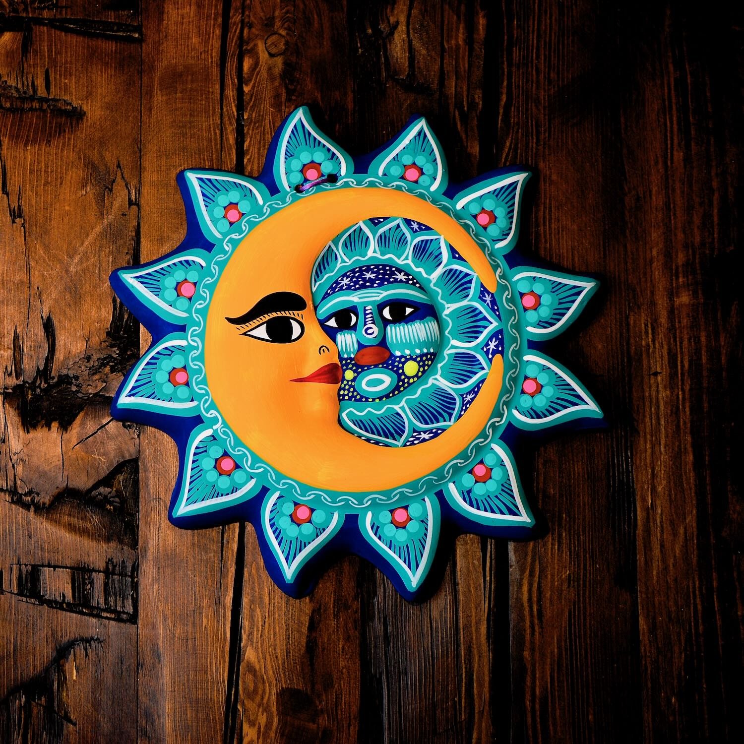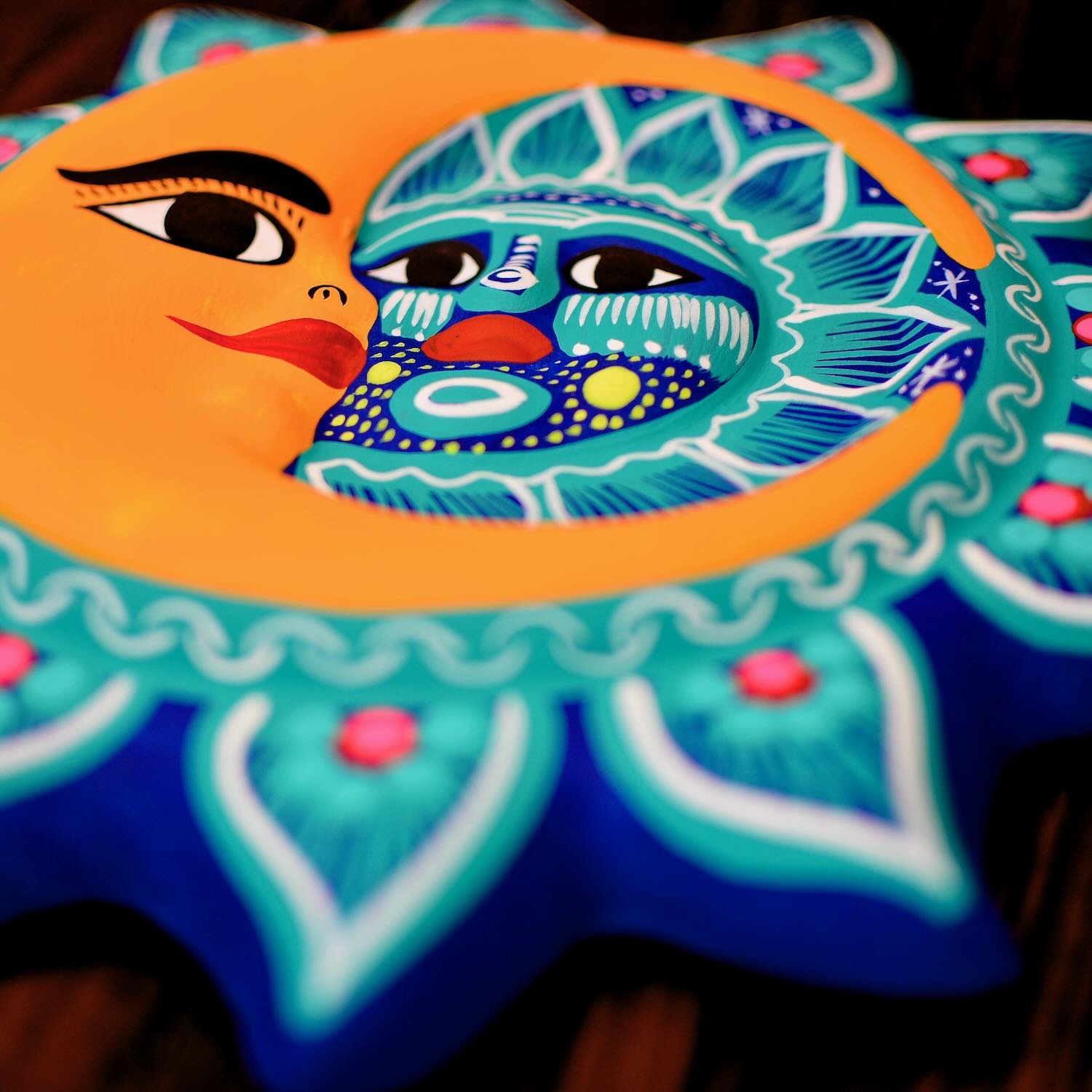 Returns & Exchanges | Shipping Categories: Select a Category Dining Bars Bar Tables Benches Booths Buffets Cabinets Chairs Curios Islands Stools Dining Tables Living Armoires Benches Chairs Coffee Tables Console & Sofa Tables End Tables Hall Trees Ottomans Saddle Stands Sofas Office Bookcases Desks Desk Chair Furniture Bed & Bath Beds Chests Dressers Nightstands Vanities Decor Animals Birds Cats Dogs Candles & Incense Candle Holders & Stands Burners Luminarias Chimineas Cowhide & Leather Bowls Coasters Cowhides Cow Skulls Miscellaneous Runners Dia de los Muertos Doors Glassware Bottles Glasses Glassware Sets Pitchers Shot Glasses Holiday Christmas Halloween Other Outdoor Grills Metal Art Planters, Jars & Vases Religious Angels Crosses Retablos Sacred Hearts Serveware Barware Bowls Canisters & Jars Cups Display Plates Miscellaneous Plates Spoons Tea & Coffee Pots Tortilla Warmers Sinks Table Decor Boxes Picture Frames Table Decor Textiles Amate Aprons Baskets Blankets Coasters Cornhusk Palm Decor Pillows Table Runners Wall Decor Clay Copper Glass Metal Suns, Moons & Stars Talavera Western Art & Mirrors Carved Mirrors Paintings Photography Sculptures Lighting Table Lamps Floor Lamps Lampshades Pigskin Rawhide Specialty Lighting Apparel Purses & Bags Decor / Wall Decor / Suns, Moons & Stars Sol y Luna de Talavera $60.00 Sol y Luna de Talavera $49.00 Talavera Sun & Moon with Stars $99.00 Sol Vibrante $199.00 Sol Y Luna $299.00 Cobalt Clay Sun Face $59.00 Arcilla Sol y Luna $49.00