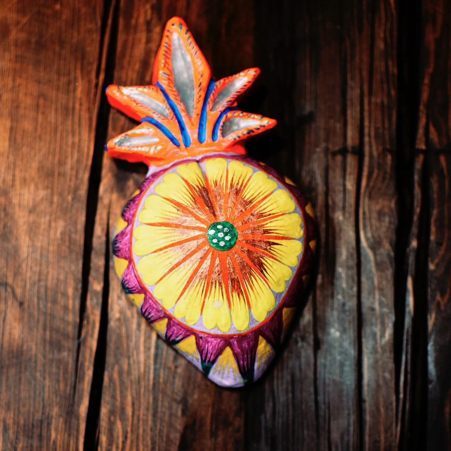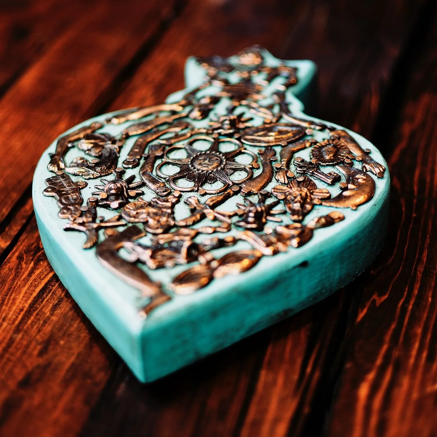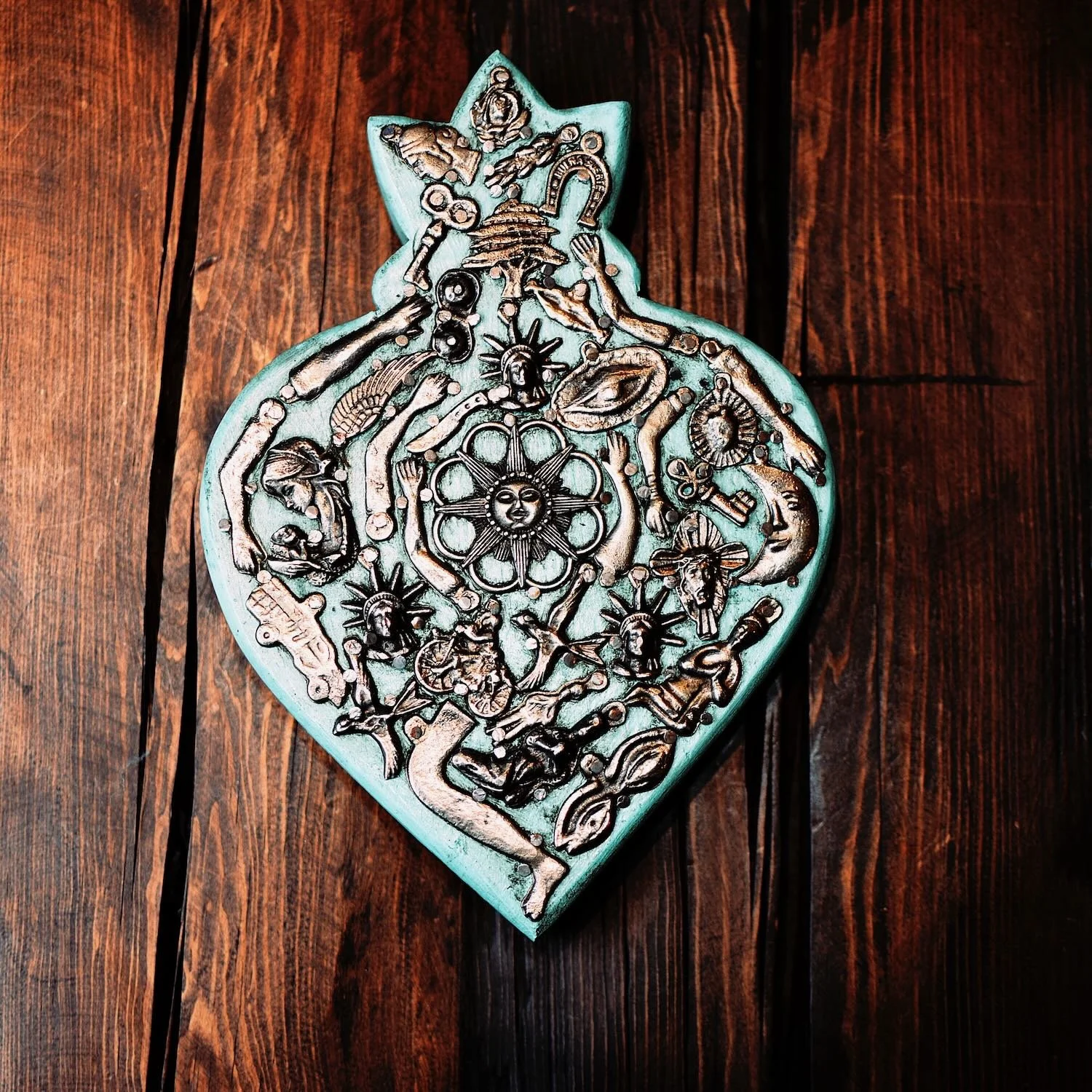 Handmade Metal Sacred Heart from Oaxaca