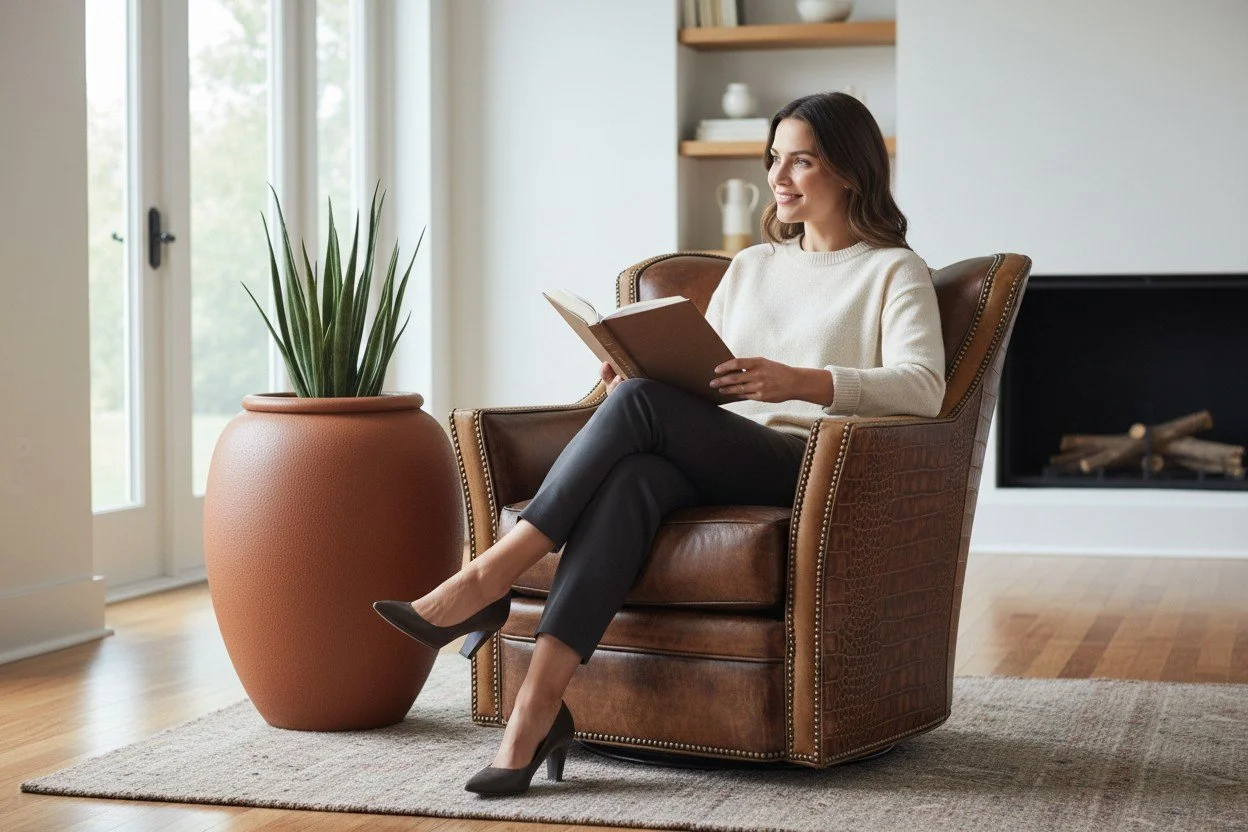 The tight channel back brings classic structure, giving the chair a refined, tailored look. Beneath it all is a smooth swivel base, making the Sedona as comfortable and practical as it is striking. It’s the kind of chair you sink into at the end of a long day—steady, supportive, and full of presence.