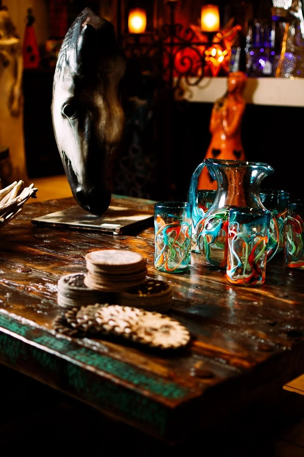 Arizona’s desert palette is filled with tans, rusts, and soft neutrals. Rustic furniture — with its deep wood tones, copper accents, and vibrant Talavera pottery — adds contrast and warmth. A reclaimed wood dining table or handblown glassware can bring richness and depth to interiors that reflect the colors of the desert.