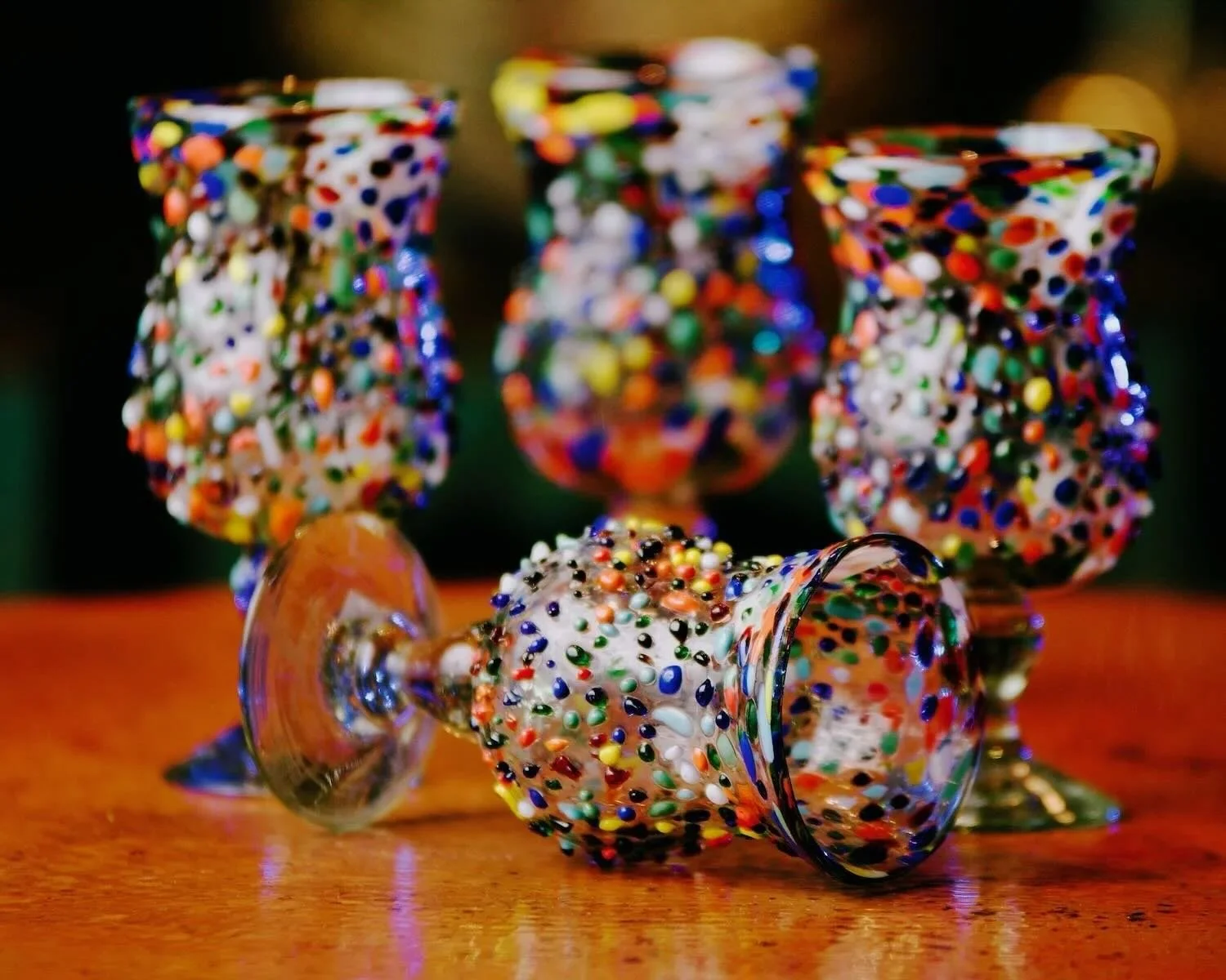 New arrivals! Our Guanajuato Glassware brings color and texture to every table. Handblown in Mexico and available now at Milagros Rústicos in Dana Park.