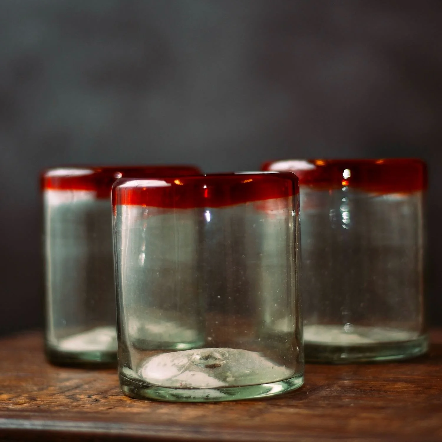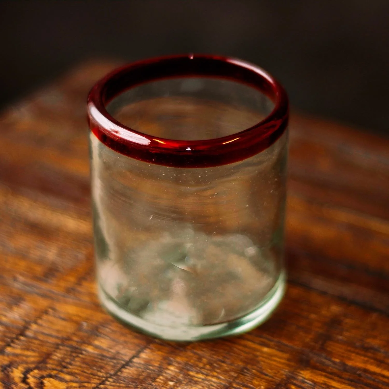 Cantina Tall Glass – Red Rim, Handblown in Mexico