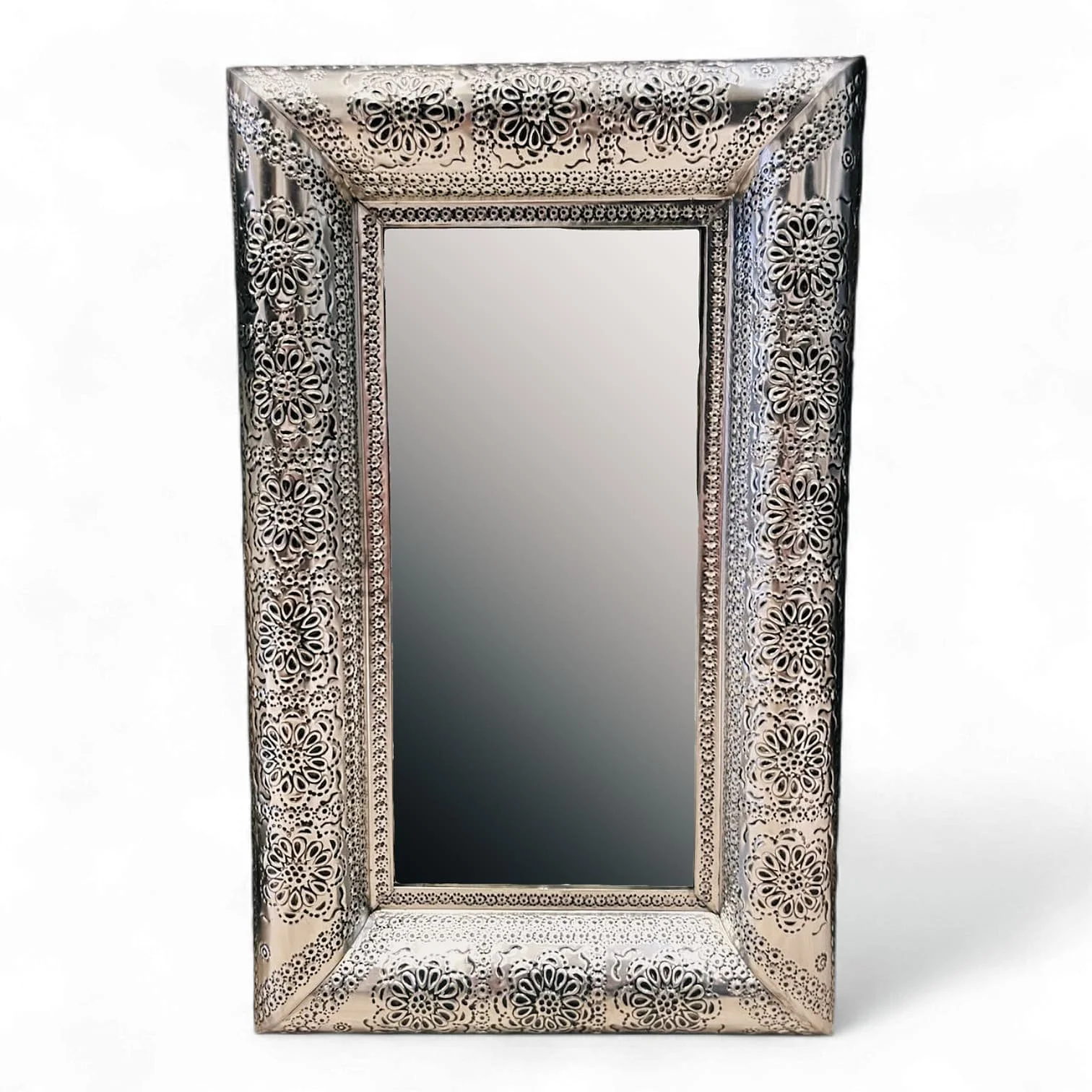Add a touch of rustic elegance to your home with the Punched Tin Mirror – Black, a beautifully handcrafted piece made in Mexico. Featuring an intricately hand-punched tin frame with a sleek black finish, this mirror combines traditional craftsmanship with timeless style. Its versatile design makes it perfect for bathrooms, bedrooms, entryways, or hallways. Easy to hang horizontally or vertically, it’s a striking accent that enhances any space with authentic Mexican charm.